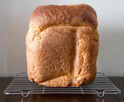 作り方は、強力粉から水までをパンケース、インスタントドライイーストをイースト容器に入れて、「ドライイースト」、「食パン」コースで作っています。