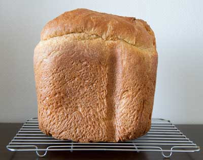 作り方は、強力粉から水までをパンケース、インスタントドライイーストをイースト容器に入れて、「ドライイースト」、「食パン」コースで作っています。