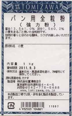 富澤商店で小麦粉を物色中、全粒粉が美味しそうだったため、強力粉の1/3を全粒粉にして作ってみました。
