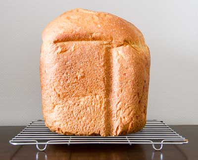 作り方は、強力粉から水までをパンケース、インスタントドライイーストをイースト容器に入れて、「ドライイースト」、「食パン」コースで作っています。