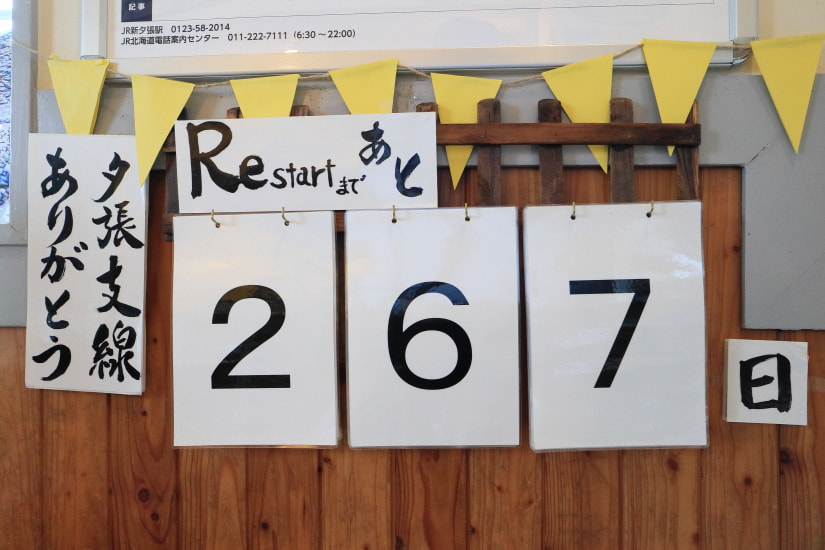 駅舎内には、夕張支線の廃止まで、267日と書かれていました。