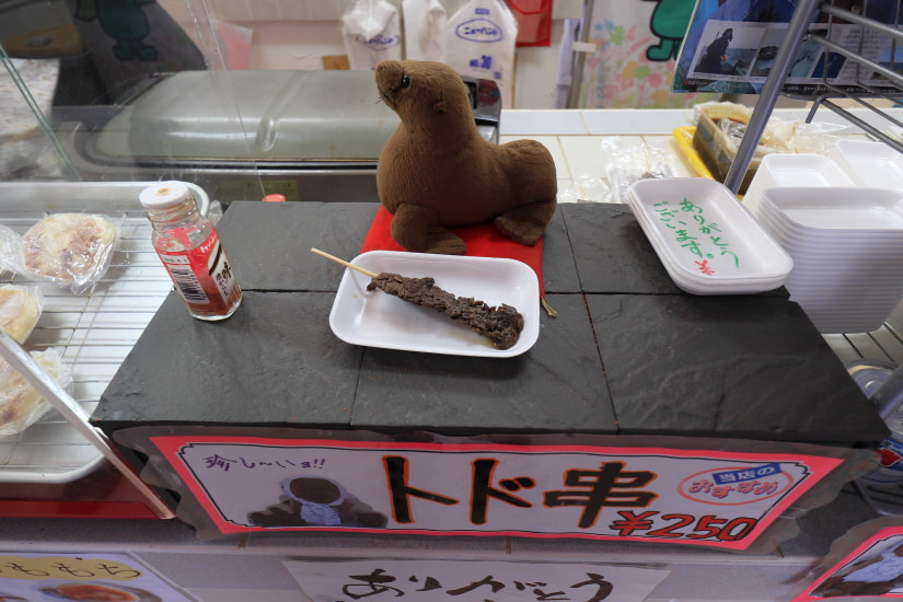 「トドの串焼き」というものを売っていたので、どんなものか、食べました。