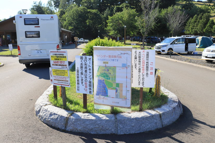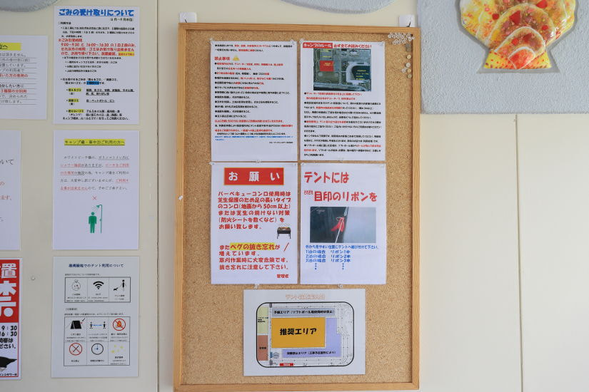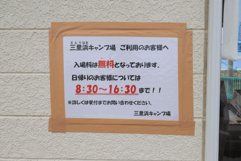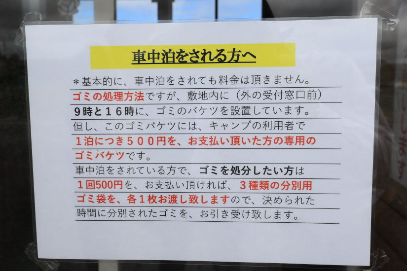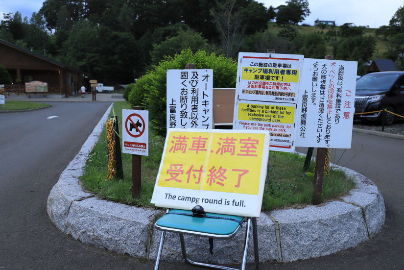「日の出公園オートキャンプ場」に戻ると、入り口の案内が、「満車・満室」になっていました。