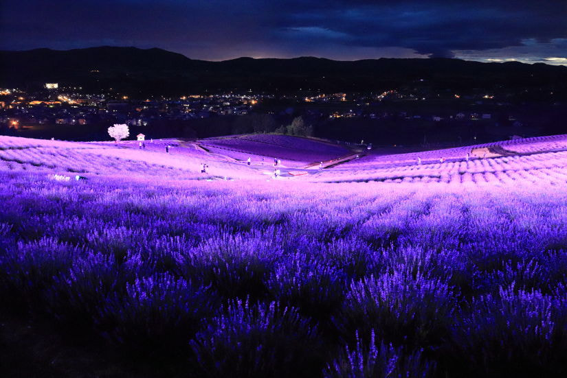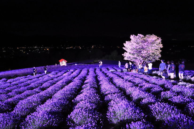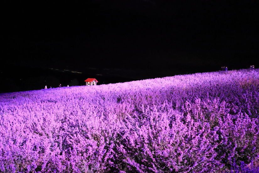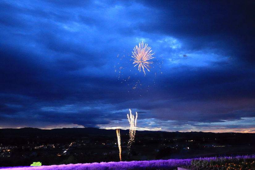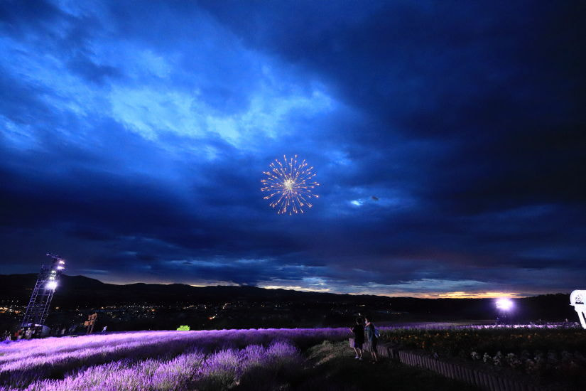 「日の出公園」の「ラベンダー園」がライトアップされる「ラベンダーフェスタ」が開催され、オープニングの挨拶の後、予想していなかった花火が上がりました。