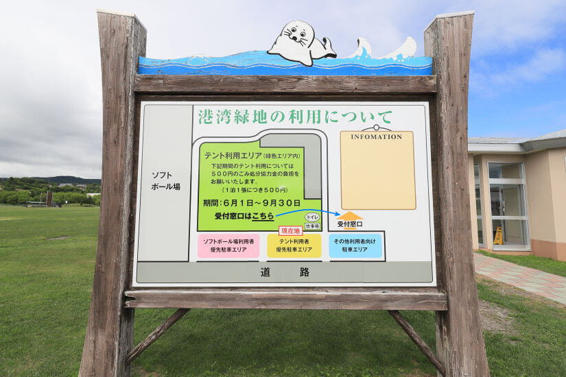 紋別港の海洋公園の中、車中泊が多かった駐車場が今はどうなっているのか、見に行きました。
