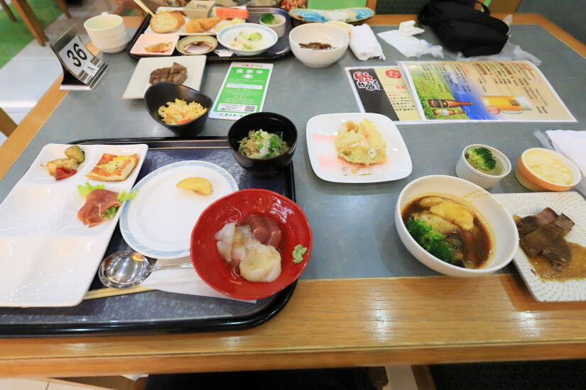 11:30 am 過ぎに北海道に上陸し、お昼は、「道の駅 みそぎの郷きこない」の「どうなんde's」でいただきました。