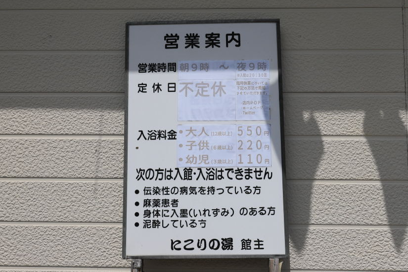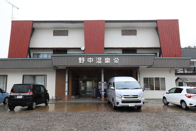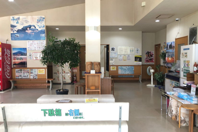 今回、建物の屋根に書かれていた温泉名がなくなっていました。