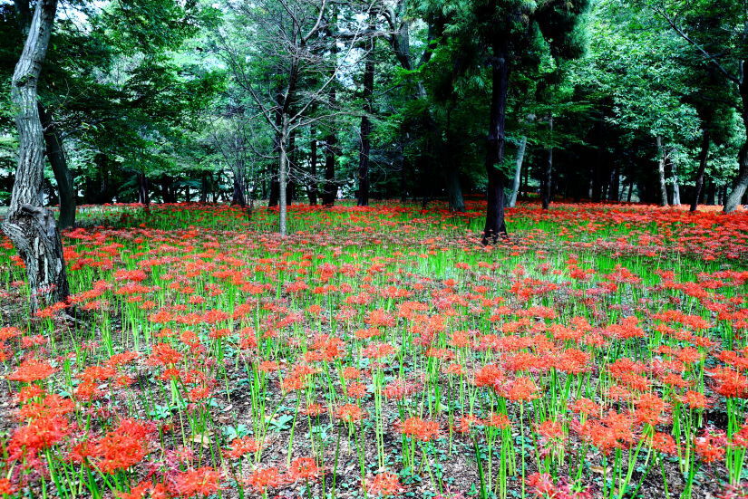 今、村上緑地公園で、彼岸花が見頃を迎えているとのことで、見に行きました。