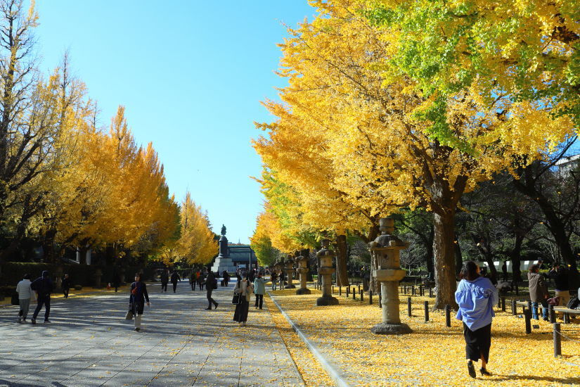 この時期、風に舞う銀杏、そして、銀杏の絨毯が見事でした。