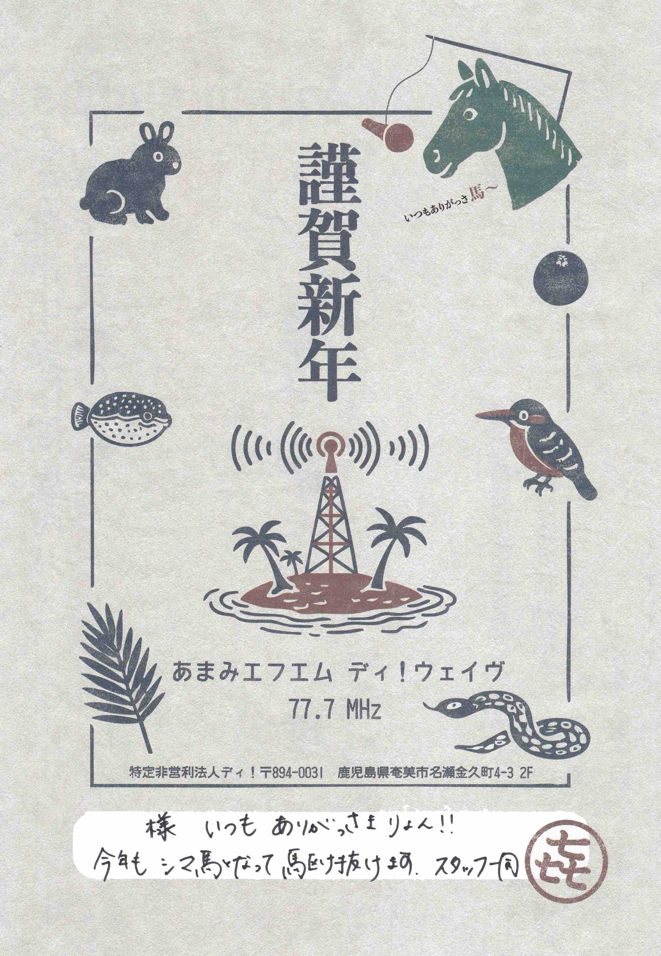自宅に帰ったら、あまみエフエムから、2026年の年賀状。