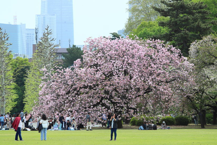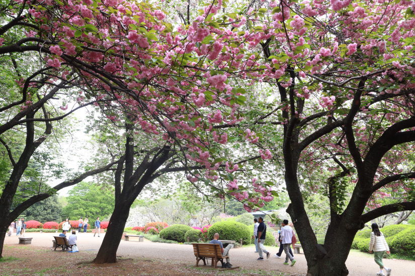 八重桜の開花に合わせて、新宿御苑に行きました、